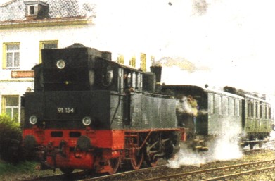 Die Dampflok 91134 mit historischem Wagenpark am 8. April 1994 bei der Abfahrt vom Kalbenser Bahnhof nach Hohenwulsch. Acht Jahre zuvor verschwand die Verbindung nach Salzwedel aus dem Fahrplan. Fotos: Bodo Habermann