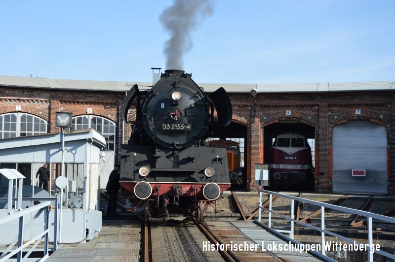 Am 25. Februar 2019 legte 03 2155-4 einen Wasserhalt in Wittenberge ein. |