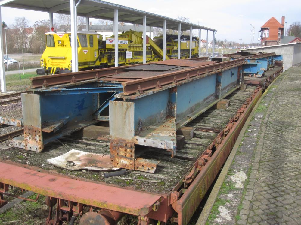 Außerdem sind zwei Güterwagen hinterstellt, welche die Drehbrücke einer Drehscheibe tragen, die mittelfristig auf dem Gelände des ehemaligen Lokschuppens 1 wiedererrichtet werden soll. Die Teile stammen aus dem ehemaligen Bahnbetriebswerk Parchim und wurden durch den Verein Anfang des Jahres 2016 geborgen.