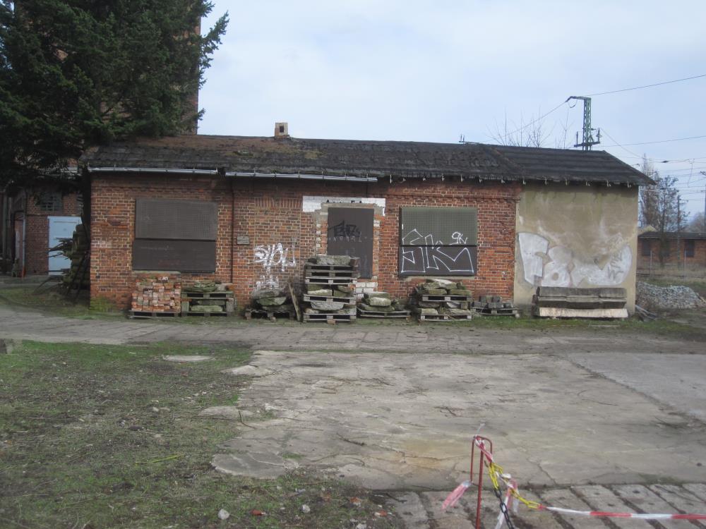 In dem Gebäude war früher die Strommeisterei des Bahnbetriebswerkes unterbracht. Heute steht das Gebäude leer und ist einsturzgefährdet.