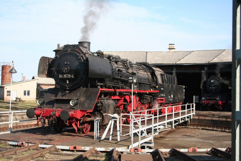 Die Dampflok 50 3570-4 wurde 1942 als eine von mehreren Tausend ihrer Baureihe in Dienst gestellt. Seinerzeit trug sie die Nummer 50 2308. Nach dem Einsatz in der Lokkolonne verblieb sie in der DDR und wurde Ende der 1950er Jahre grundlegend rekonstruiert. Dabei erhielt sie einen neuen fabrikneuen Kessel und trug seitdem die Betriebsnummer 50 3570.