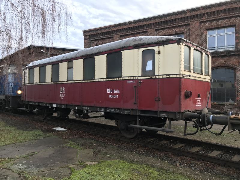 Das Museum Historischer Lokschuppen Wittenberge ist um eine Attraktion reicher. In der Nacht zum 17.12.2019 erreichte der Beiwagen 190 851-6 seinen neuen Standort in Wittenberge. Er blickt auf eine bewegte Geschichte zurück: Das Fahrzeug wurde 1927 bei der Firma Wegmann als 2-achsiger Dieseltriebwagen „VT 804“ gebaut. Die damalige Deutsche Reichsbahn Gesellschaft hatte insgesamt vier Stück dieses Typs erworben, um damit einen wirtschaftlicheren Betrieb auf Nebenbahnen zu testen. Zwei Stück davon verblieben nach dem Krieg in der sowjetischen Besatzungszone. 1951 wurde der Motor unseres Fahrzeugs entfernt und die Deutsche Reichsbahn der DDR setzte ihn fortan als Beiwagen unter der Nummer VB 140 602 ein, unter anderem auf der Strecke Rövershagen – Graal-Müritz. 1960 bis 1975 kam er auf der Prignitzer Kreisringbahn zum Einsatz, bis diese stillgelegt wurde. 1977 übernahm die Rbd Berlin den Wagen und diente dort fortan als Personal- und Bauzugwagen. 1988 übergab man ihn an das Deutsche Technikmuseum Berlin, wo er im Depot für Kommunaltechnik an der Monumentenstraße abgestellt wurde. Dort war er ab und zu für die Öffentlichkeit zugänglich, zuletzt im September 2019.
