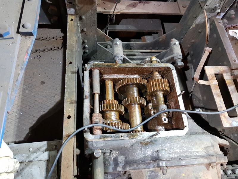Die Arbeiten am Breuer-Traktor, über dessen Einsatzgebiet und Funktionsweise wir schon beim letzten Mal berichteten, gehen weiter. Erstmals wurde das Getriebe geöffnet, um zu sehen, wie weit die Korrosion schon ihr Unwesen getrieben hat. Zu unserer Überraschung sieht es darin noch ganz gut aus, obwohl sich das Getriebeöl bereits mit Kondenswasser vermischt und eine übel riechende Emulsion gebildet hatte. Aber wie heißt es so schön: Nase zu und durch! Das Getriebe konnte inzwischen ausgebaut werden und wird demnächst gereinigt.