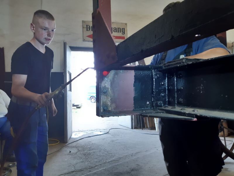 Einige der in Wittenberge verbliebenen Aktiven beschäftigten sich mit der weiteren Restaurierung unseres Güterwagens G10 aus dem ersten Viertel des vergangenen Jahrhunderts. Dessen metallene Rahmenteile und Streben sind noch genietet. Da sich während der letzten Restaurierungsschritte gezeigt hatte, dass einige Nietverbindungen aufgrund von Rost schwach geworden waren, mussten sie ersetzt werden. Die folgenden Fotos zeigen die Arbeiten beim Einsetzen neuer Nieten: