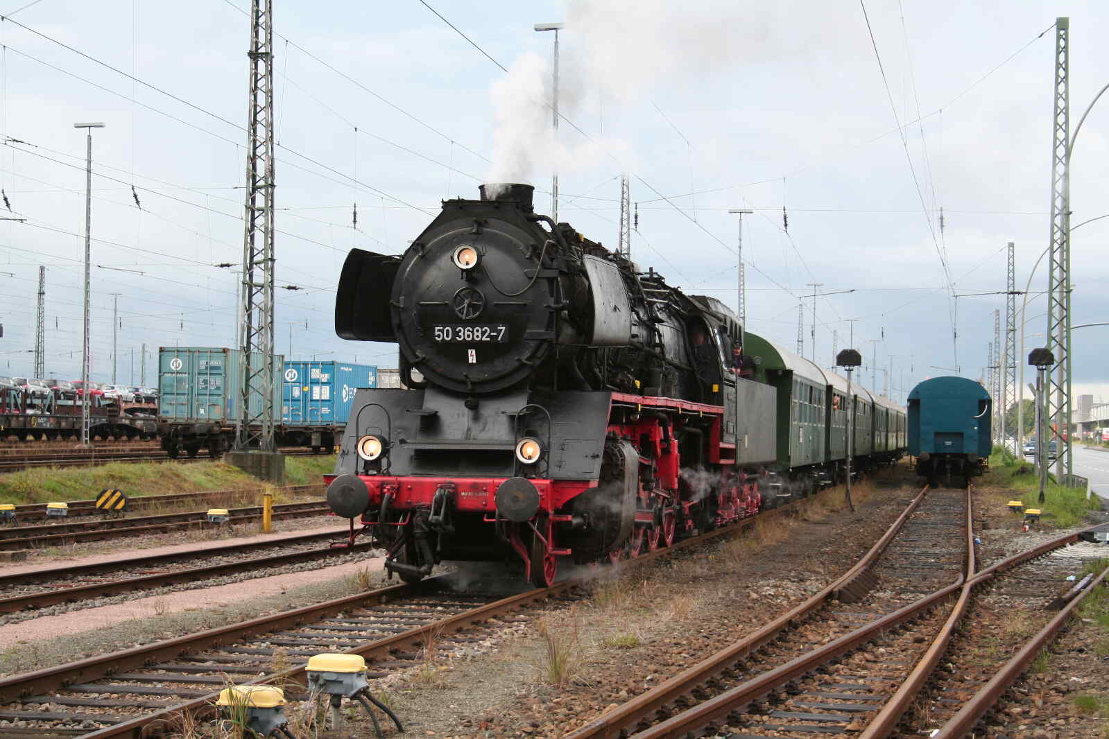 Bereits am Samstag, den 12.9., setzten wir unseren kurzen Museumszug bestehend aus Lok 0604 der OHE und einem zweiachsigen Personenwagen als Pendel zum Wittenberger Bahnhof ein.