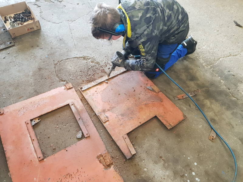Außerdem wird gerade die Bremsanlage gangbar gemacht und die Verkleidungsbleche vom Rost befreit.