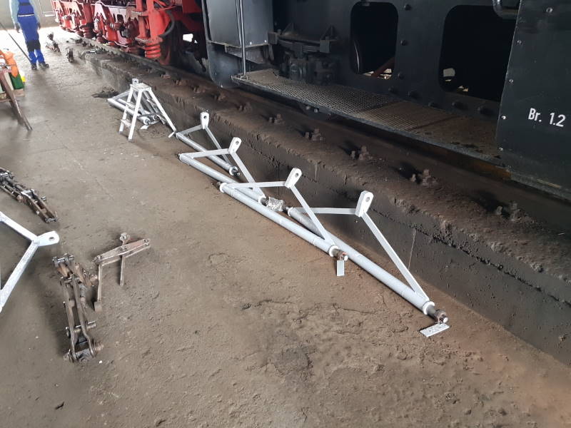 Die Arbeiten am Tender der 50 3570 gehen auch weiter. Gestern wurden die Bremstraversen eingebaut und die Hangeisen montiert, natürlich mit fabrikneuen Bremsbelägen (im der Eisenbahnersprache auch Bremssohlen genannt)
