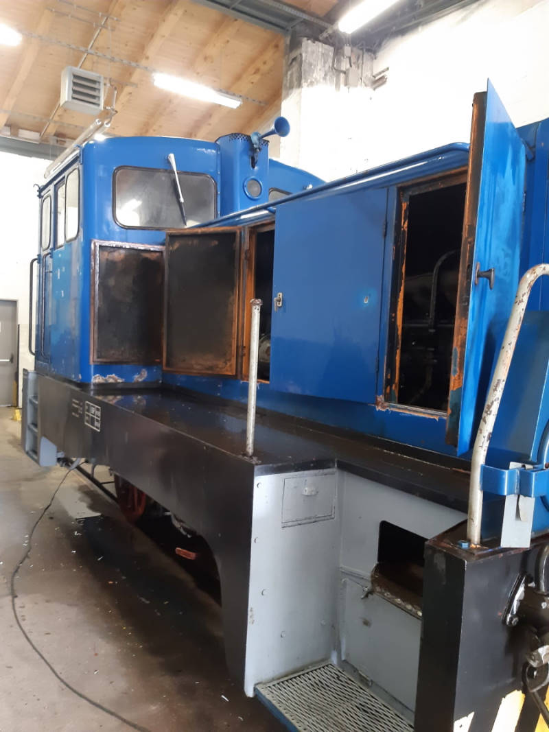 Eine der beiden betriebsfähigen Dieselloks der Baureihe V23 wurde in die Werkstatt gefahren, um sie gründlich zu reinigen. Die Lok trägt bisher die Betriebsnummer 2 des Zellstoffwerkes Stendal und eine blaue Farbgebung. Sie soll demnächst orange lackiert werden und die Betriebsnummer 102 076 tragen. Damit erinnern wir an den Einsatz einer baugleichen Lokomotive mit der Nummer beim Bahnbetriebswerk Wittenberge zu Zeiten der Deutschen Reichsbahn. Die Lok soll zukünftig zusammen mit dem demnächst wieder betriebsfähigen Beiwagen VB 197 805 eingesetzt werden. Diese Kombination solcher Beiwagen und Lokomotiven war früher typisch für die Nebenbahnen in der Prignitz und in der benachbarten Altmark.