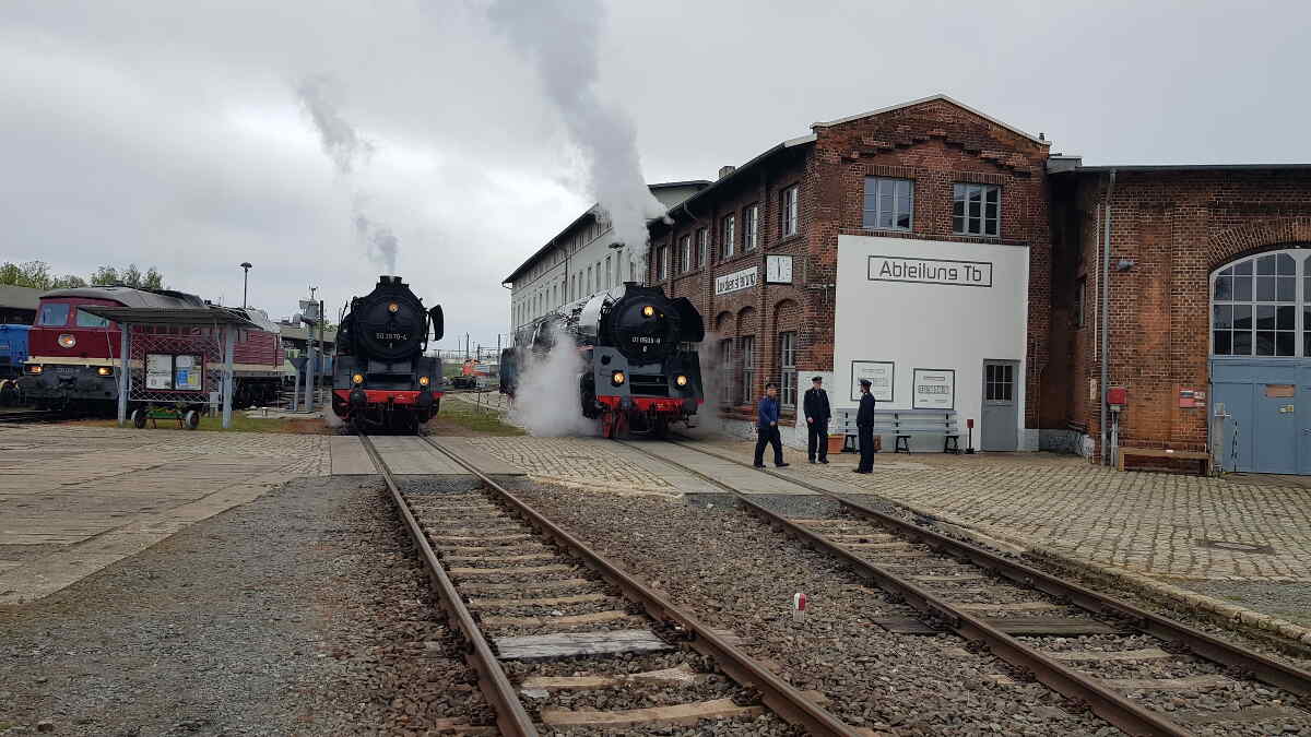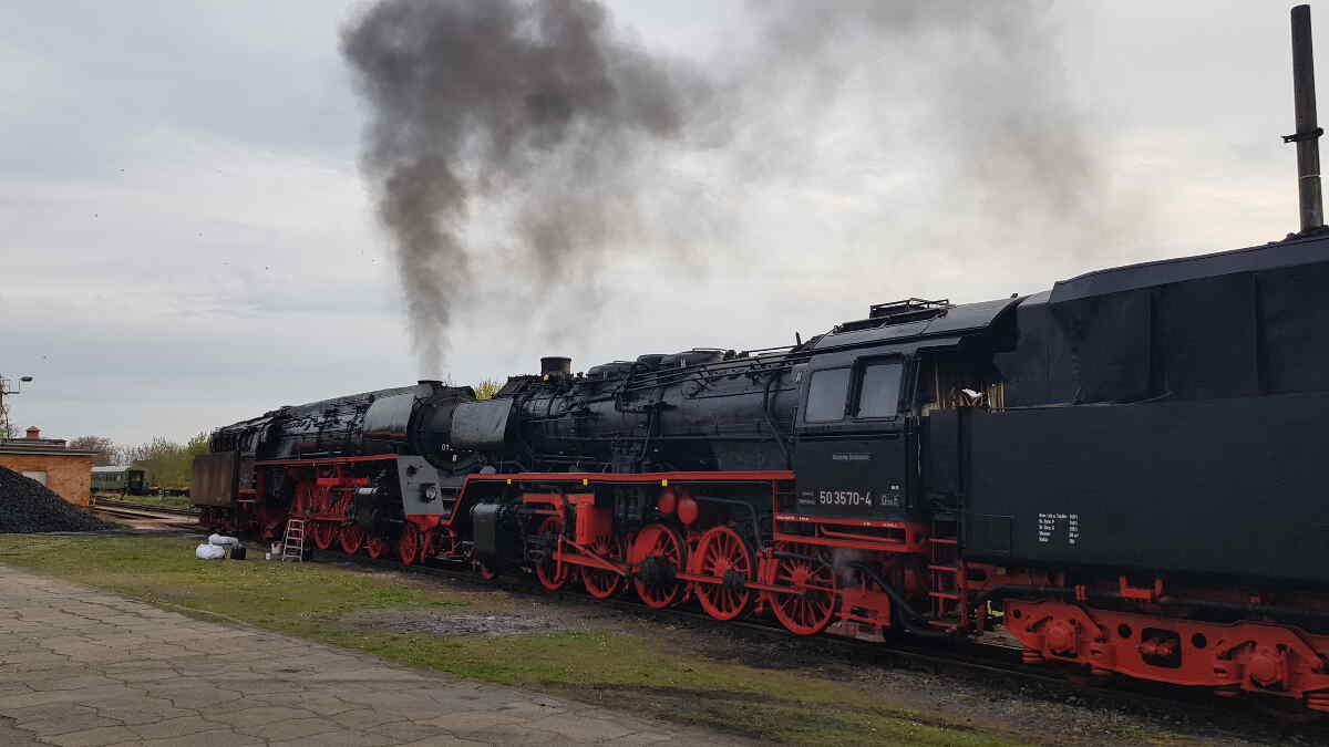 Wir blicken mit Stolz zurück auf unser Frühjahrsfest am vergangenen Wochenende. Für die Aktiven waren es vier anstrengende Tage, aber die Anstrengung hat sich gelohnt. Zunächst begannen wir bereits am Donnerstag vor der Veranstaltung damit, die großen Dampfloks 50 3570 und 01 509 anzuheizen. Das ist ziemlich langwierig, weil zunächst die kohlegefeuerte 50 3570 auf Betriebstemperatur gebracht werden muss. Das allein dauert schon gute sechs Stunden.