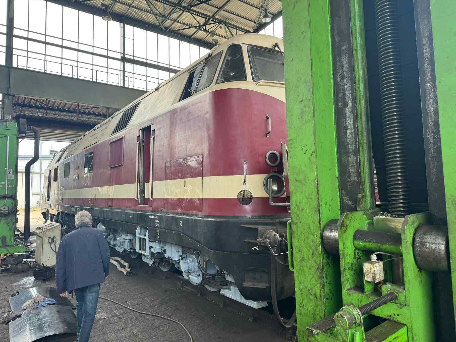 Kommen wir nun zu den Aktivitäten im Museum und seinen Fahrzeugen. Einige Besucher fragten bereits während der letzten Veranstaltung, wo unsere Diesellok 118 748 sei. Die Antwort lautet: Sie befindet sich noch in einer Fachwerkstatt, wo eine Hauptuntersuchung durchgeführt wird. Die entsprechenden Arbeiten sind fast abgeschlossen, die Lok steht wieder auf ihren eigenen Rädern und die Motoren laufen. Zurzeit erfolgen noch Restarbeiten wie der Einbau einer modernen Funkanlage. Sie ist Voraussetzung für den Einsatz der Lok auf öffentlichen Gleisen.